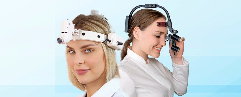 X1-Stirnlampe mit Halterung für die Verwendung mit Lupen und Brillen