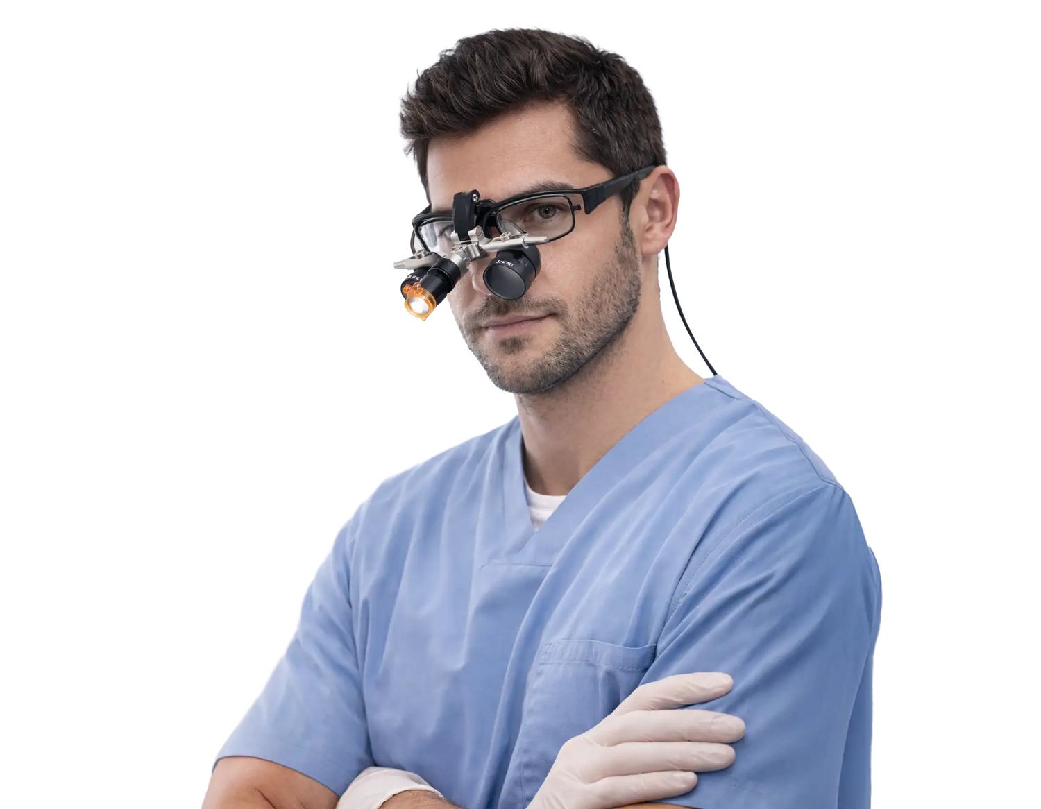 Lupe odontologische Lupe mit 5W LED-Beleuchtung und einer Intensität von bis zu 40.000 Lux. Garantiert präzise Diagnosen und Ergonomie in Ihrer Praxis. Lang anhaltender Akku.
