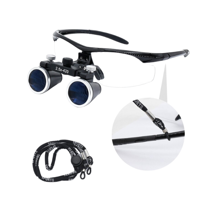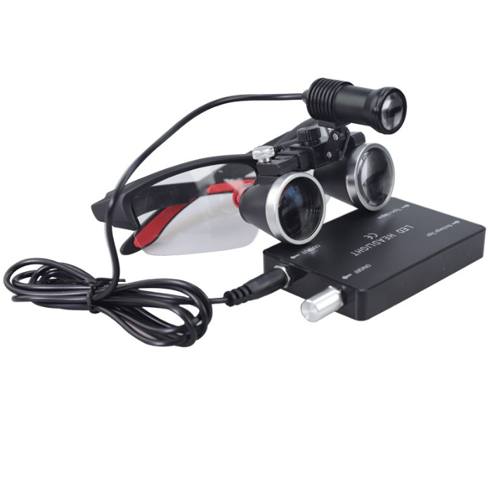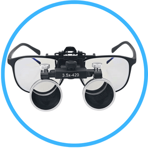 Glaslinsen mit 2,5-facher oder 3,5-facher Vergrößerung und einer Brennweite von 30 bis 42 Zentimetern.